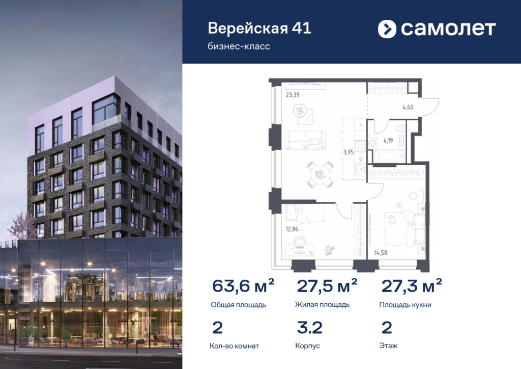 Строим кварталы для жизни с заботой о будущем. Предлагается 2-комнатная квартира бизнес-класса 63,57 кв.м в корпусе 3.2 на 2 этаже, в «Верейская 41» Квартира без отделки. Доступность опции «отделка» и возможность комплектации мебелью и декором уточняйте у застройщика. Приобрести квартиру возможно по специальным акциям от застройщика, с текущими условиями акций можно ознакомиться в блоке «Акций». Цена динамическая и может отличаться, уточняйте актуальность у застройщика. «Верейская 41» — проект бизнес-класса рядом с «Долиной реки Сетунь» и Кутузовским проспектом. Из панорамных окон открываются виды на природный заказник. Комплекс включает 4 урбан-блока высотой до 14 этажей, зеленые террасы, сад с навесами из растений, спортивные и игровые площадки, плоскостной и 2 подземных паркинга. Планировки сдаются с дизайнерской отделкой в природных тонах.