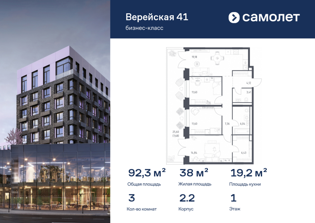 Строим кварталы для жизни с заботой о будущем. Предлагается 3-комнатная квартира бизнес-класса 92,26 кв.м в корпусе 2.2 на 1 этаже, в «Верейская 41» Квартира без отделки. Доступность опции «отделка» и возможность комплектации мебелью и декором уточняйте у застройщика. Приобрести квартиру возможно по специальным акциям от застройщика, с текущими условиями акций можно ознакомиться в блоке «Акций». Цена динамическая и может отличаться, уточняйте актуальность у застройщика. «Верейская 41» — проект бизнес-класса рядом с «Долиной реки Сетунь» и Кутузовским проспектом. Из панорамных окон открываются виды на природный заказник. Комплекс включает 4 урбан-блока высотой до 14 этажей, зеленые террасы, сад с навесами из растений, спортивные и игровые площадки, плоскостной и 2 подземных паркинга. Планировки сдаются с дизайнерской отделкой в природных тонах.