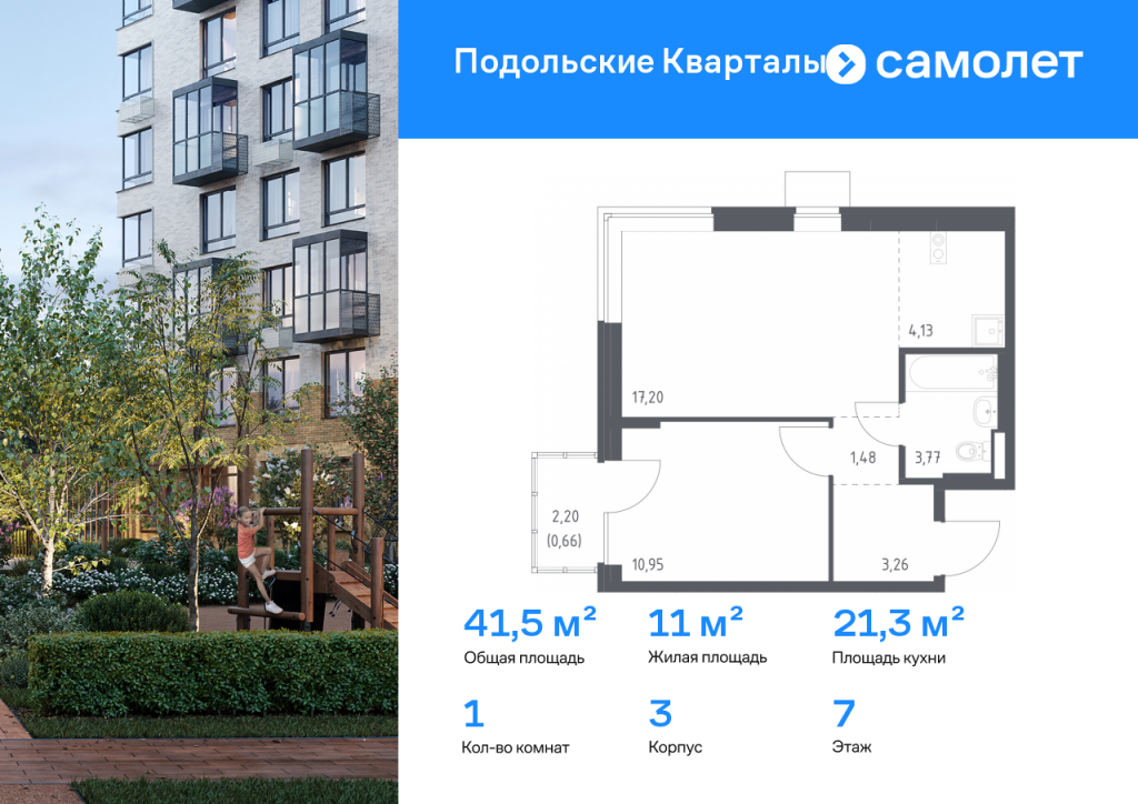 Строим кварталы для жизни с заботой о будущем. Предлагается 1-комнатная квартира комфорт-класса 41,45 кв.м в корпусе 3 на 7 этаже, в ЖК «Подольские Кварталы» Квартира с предчистовой отделкой. Доступность дополнительных опций уточняйте у застройщика. Приобрести квартиру возможно по специальным акциям от застройщика, с текущими условиями акций можно ознакомиться в блоке «Акций». Цена динамическая и может отличаться, уточняйте актуальность у застройщика. «Подольские кварталы» — жилой комплекс в Новой Москве, рядом с Дубровицким лесом и рекой Десной. До станции МЦД-2 "Остафьево" - 5 минут на общественном транспорте, до станции МЦД-2 «Силикатная» — 8 минут на машине. Рядом — музей-заповедник «Остафьево», усадьбы Плещеево и Дубровицы. В квартале будут детский сад на 200 мест и учебно-воспитательный комплекс на 1 500 мест, в который войдут школа и детский сад. Первые этажи жилых корпусов займут квартиры, кафе, магазины и салоны красоты. Дворы-парки будут радовать жителей цветением и зеленью: здесь высадят липы, сосны, ели, клены и сирень. Плэйхаб станет местом встреч всех любителей активного отдыха: застройщик оборудует зоны тренажеров и воркаута, площадки для игр в настольный теннис, мяч, шахматы. Также появятся современные игровые площадки для детей. Для автовладельцев предусмотрен многоуровневый паркинг. В проекте — монолитные дома высотой от 9 до 12 этажей. Теплые оттенки фасадов соответствуют дизайн-коду «Янтарный берег». Фасады облицованы ложковой кирпичной кладкой.