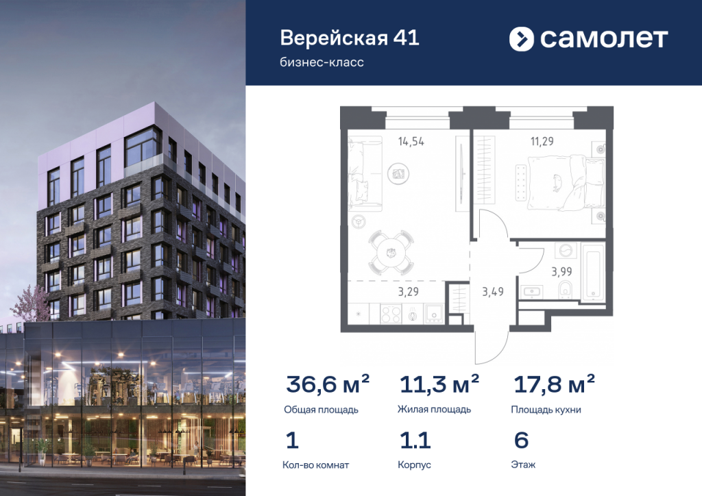 Строим кварталы для жизни с заботой о будущем. Предлагается 1-комнатная квартира бизнес-класса 36,6 кв.м в корпусе 1.1 на 6 этаже, в «Верейская 41» Квартира без отделки. Доступность опции «отделка» и возможность комплектации мебелью и декором уточняйте у застройщика. Приобрести квартиру возможно по специальным акциям от застройщика, с текущими условиями акций можно ознакомиться в блоке «Акций». Цена динамическая и может отличаться, уточняйте актуальность у застройщика. «Верейская 41» — проект бизнес-класса рядом с «Долиной реки Сетунь» и Кутузовским проспектом. Из панорамных окон открываются виды на природный заказник. Комплекс включает 4 урбан-блока высотой до 14 этажей, зеленые террасы, сад с навесами из растений, спортивные и игровые площадки, плоскостной и 2 подземных паркинга. Планировки сдаются с дизайнерской отделкой в природных тонах.