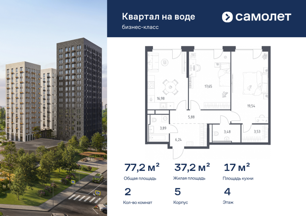 Строим кварталы для жизни с заботой о будущем. Предлагается 2-комнатная квартира бизнес-класса 77,19 кв.м в корпусе 5 на 4 этаже, в ЖК «Квартал на воде» Квартира без отделки. Доступность опции «отделка» и возможность комплектации мебелью и декором уточняйте у застройщика. Приобрести квартиру возможно по специальным акциям от застройщика, с текущими условиями акций можно ознакомиться в блоке «Акций». Цена динамическая и может отличаться, уточняйте актуальность у застройщика. «Квартал на воде» — жилой комплекс бизнес-класса на берегу Москвы-реки, в районе Печатники. Включает дома переменной этажности, собственную благоустроенную набережную и приватные дворы-парки. Проект — пример минималистичной архитектуры от бюро Kleinewelt Architekten. До МЦД-2 «Перерва» — 5 минут пешком. В конце 2027 года рядом откроется станция метро «Курьяново».