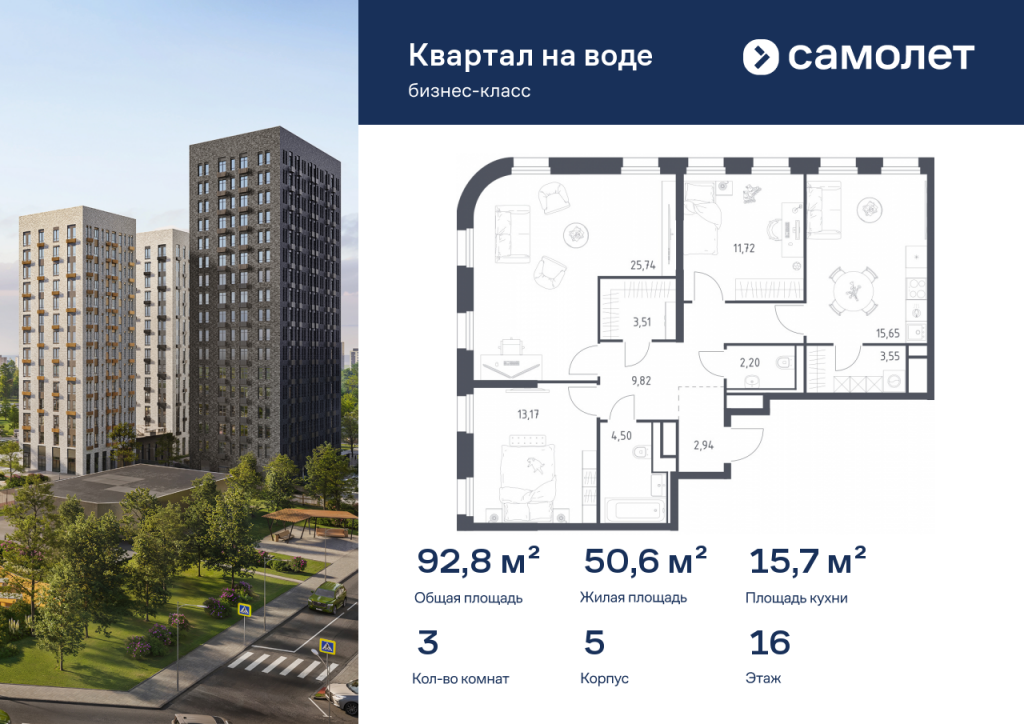 Строим кварталы для жизни с заботой о будущем. Предлагается 3-комнатная квартира бизнес-класса 92,8 кв.м в корпусе 5 на 16 этаже, в ЖК «Квартал на воде» Квартира без отделки. Доступность опции «отделка» и возможность комплектации мебелью и декором уточняйте у застройщика. Приобрести квартиру возможно по специальным акциям от застройщика, с текущими условиями акций можно ознакомиться в блоке «Акций». Цена динамическая и может отличаться, уточняйте актуальность у застройщика. «Квартал на воде» — жилой комплекс бизнес-класса на берегу Москвы-реки, в районе Печатники. Включает дома переменной этажности, собственную благоустроенную набережную и приватные дворы-парки. Проект — пример минималистичной архитектуры от бюро Kleinewelt Architekten. До МЦД-2 «Перерва» — 5 минут пешком. В конце 2027 года рядом откроется станция метро «Курьяново».