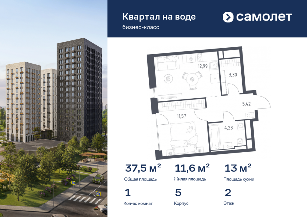 Строим кварталы для жизни с заботой о будущем. Предлагается 1-комнатная квартира бизнес-класса 37,51 кв.м в корпусе 5 на 2 этаже, в ЖК «Квартал на воде» Квартира без отделки. Доступность опции «отделка» и возможность комплектации мебелью и декором уточняйте у застройщика. Приобрести квартиру возможно по специальным акциям от застройщика, с текущими условиями акций можно ознакомиться в блоке «Акций». Цена динамическая и может отличаться, уточняйте актуальность у застройщика. «Квартал на воде» — жилой комплекс бизнес-класса на берегу Москвы-реки, в районе Печатники. Включает дома переменной этажности, собственную благоустроенную набережную и приватные дворы-парки. Проект — пример минималистичной архитектуры от бюро Kleinewelt Architekten. До МЦД-2 «Перерва» — 5 минут пешком. В конце 2027 года рядом откроется станция метро «Курьяново».