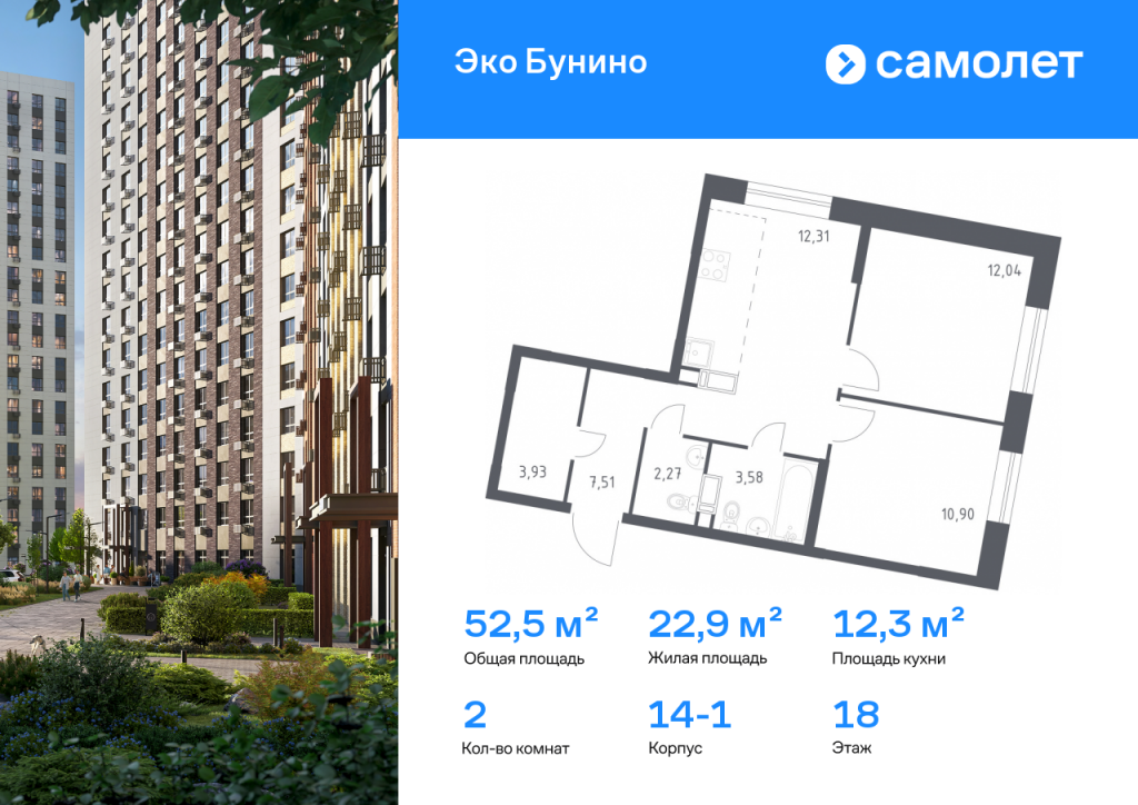 Строим кварталы для жизни с заботой о будущем. Предлагается 2-комнатная квартира комфорт-класса 52,54 кв.м в корпусе 14-1 на 18 этаже, в ЖК «Эко Бунино» Квартира с чистовой отделкой. Доступность дополнительных опций уточняйте у застройщика. Приобрести квартиру возможно по специальным акциям от застройщика, с текущими условиями акций можно ознакомиться в блоке «Акций». Цена динамическая и может отличаться, уточняйте актуальность у застройщика. «Эко Бунино» — жилой комплекс в Новой Москве, полностью готовый для жизни. Уже построены школа и детские сады, открыты ледовая арена и магазины. Рядом — 2 станции метро и 3 лесопарка для прогулок. До станции метро «Новомосковская» — 20 минут пешком по экотропе. Во дворах-парках, закрытых от машин, комфортно и безопасно гулять. Здесь высажены уже взрослые деревья, которые создают прохладную тень в жаркий день. Ребенок любого возраста найдет увлекательное занятие в уже готовом плейхабе с большой горкой в виде слона и уникальным игровым оборудованием. Пока дети играют, родители могут прогуляться по бульвару или отдохнуть под навесом из растений. «Эко Бунино» — это 19 монолитных домов переменной этажности. Для облицовки используется навесной вентилируемый фасад и клинкерная плитка, которая имитирует кирпич. Переменная этажность обеспечивает хорошую инсоляцию дворов: в солнечные дни на территории особенно приятно гулять.
