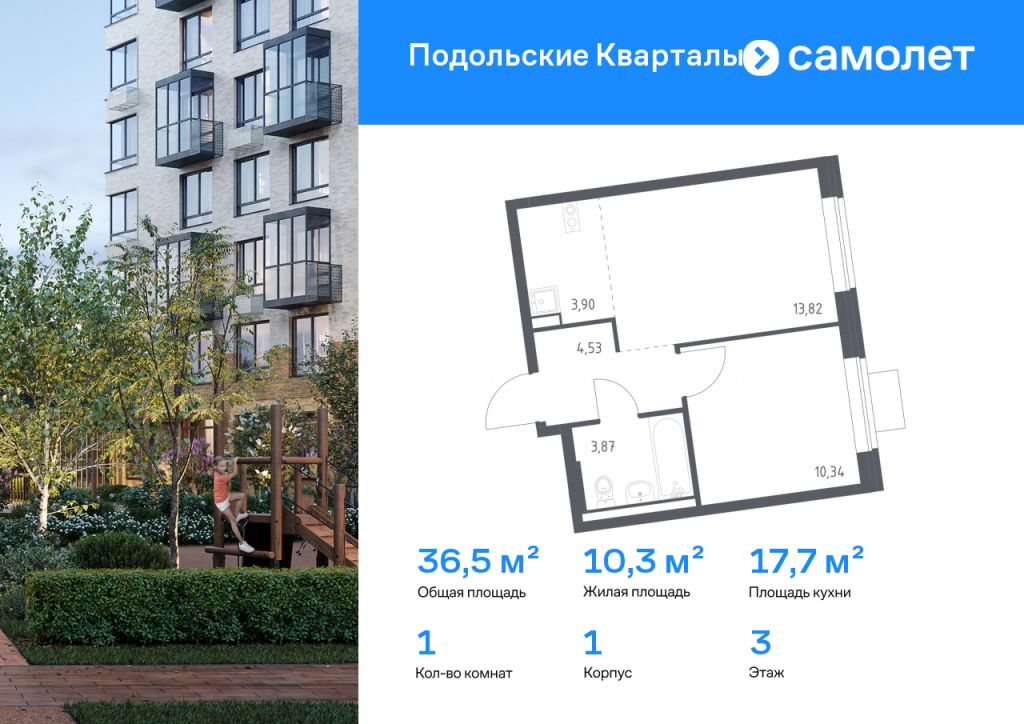 Строим кварталы для жизни с заботой о будущем. Предлагается 1-комнатная квартира комфорт-класса 36,46 кв.м в корпусе 1 на 3 этаже, в ЖК «Подольские Кварталы» Квартира без отделки. Доступность опции «отделка» и возможность комплектации мебелью и декором уточняйте у застройщика. Приобрести квартиру возможно по специальным акциям от застройщика, с текущими условиями акций можно ознакомиться в блоке «Акций». Цена динамическая и может отличаться, уточняйте актуальность у застройщика. «Подольские кварталы» — жилой комплекс в Новой Москве, рядом с Дубровицким лесом и рекой Десной. До станции МЦД-2 "Остафьево" - 5 минут на общественном транспорте, до станции МЦД-2 «Силикатная» — 8 минут на машине. Рядом — музей-заповедник «Остафьево», усадьбы Плещеево и Дубровицы. В квартале будут детский сад на 200 мест и учебно-воспитательный комплекс на 1 500 мест, в который войдут школа и детский сад. Первые этажи жилых корпусов займут квартиры, кафе, магазины и салоны красоты. Дворы-парки будут радовать жителей цветением и зеленью: здесь высадят липы, сосны, ели, клены и сирень. Плэйхаб станет местом встреч всех любителей активного отдыха: застройщик оборудует зоны тренажеров и воркаута, площадки для игр в настольный теннис, мяч, шахматы. Также появятся современные игровые площадки для детей. Для автовладельцев предусмотрен многоуровневый паркинг. В проекте — монолитные дома высотой от 9 до 12 этажей. Теплые оттенки фасадов соответствуют дизайн-коду «Янтарный берег». Фасады облицованы ложковой кирпичной кладкой.