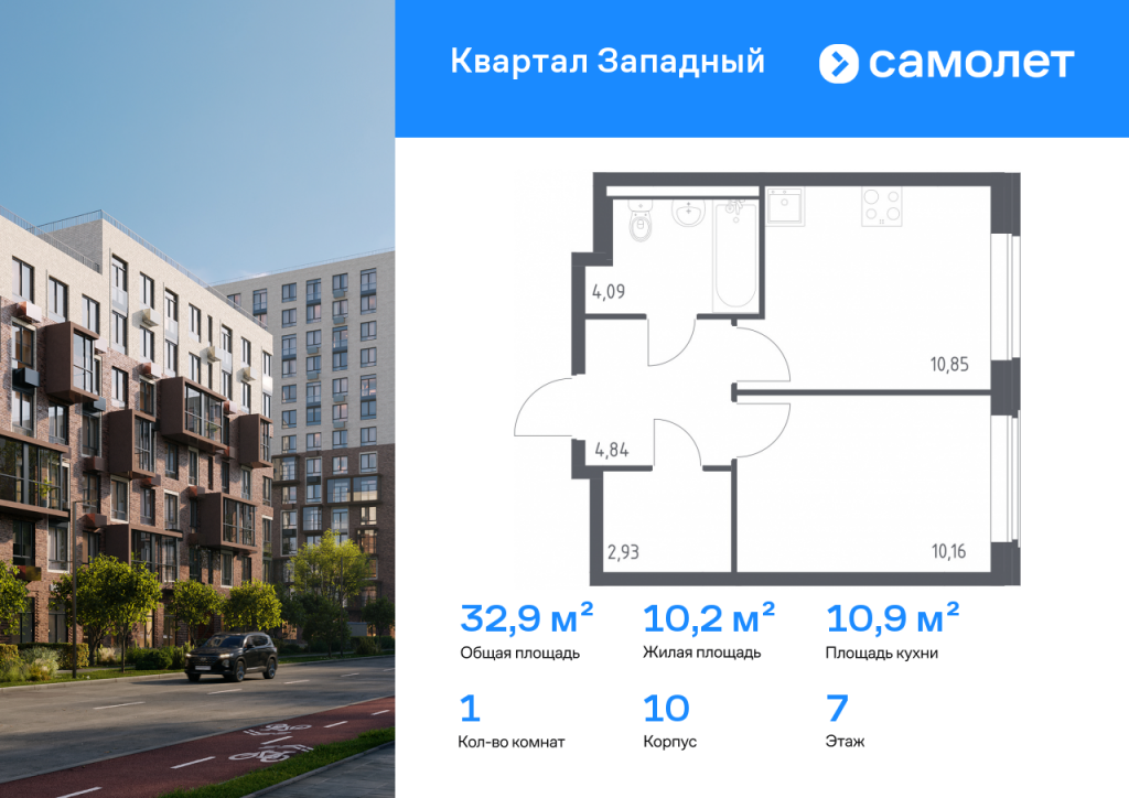 Строим кварталы для жизни с заботой о будущем. Предлагается 1-комнатная квартира комфорт-класса 32,87 кв.м в корпусе 10 на 7 этаже, в ЖК «Квартал Западный» Квартира с чистовой отделкой. Доступность дополнительных опций уточняйте у застройщика. Приобрести квартиру возможно по специальным акциям от застройщика, с текущими условиями акций можно ознакомиться в блоке «Акций». Цена динамическая и может отличаться, уточняйте актуальность у застройщика. Жилой комплекс в окружении лесопарков и рядом с рекой. До станции МЦД-4 «Санино» можно дойти пешком за 7 минут, а на территории проекта появится транспортно-пересадочный узел с торговым центром. Для жителей построят школу, 2 детсада, в одном из которых будут развивающие кабинеты-трансформеры. Дворы — тихое зеленое пространство без машин. В проекте появится собственный ландшафтный парк с благоустроенной набережной и центральная площадь, на которой будут проводиться различные мероприятия. Высота домов — от 5 до 15 этажей. Фасады выполняют в естественных оттенках, в соответствии с дизайн-кодом «Полевой луг». У каждой секции — свое цветовое решение. Белый цвет верхних этажей добавляет застройке легкости. Фасады облицованы клинкерным глазурованным кирпичом, который используют в проектах бизнес-класса.