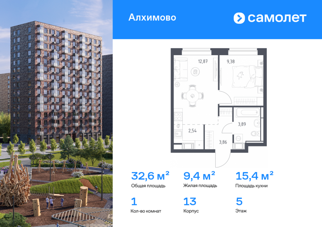 Строим кварталы для жизни с заботой о будущем. Предлагается 1-комнатная квартира комфорт-класса 32,6 кв.м в корпусе 13 на 5 этаже, в ЖК «Алхимово» Квартира с чистовой отделкой. Доступность дополнительных опций уточняйте у застройщика. Приобрести квартиру возможно по специальным акциям от застройщика, с текущими условиями акций можно ознакомиться в блоке «Акций». Цена динамическая и может отличаться, уточняйте актуальность у застройщика. «Алхимово» — жилой комплекс в Новой Москве, в 16 км от МКАД. Рядом — живописный Дубровицкий лесопарк и река Десна. На территории уже есть свои школа и детский сад, ведется строительство еще одного детского сада. Супермаркеты, аптеки и кафе — в паре шагов от дома. В будущем появится свой торговый центр. В квартале есть воркаут-зона, игровые площадки, отдельная площадка для выгула собак. Дворы закрыты от машин, для автомобилистов предусмотрен многоуровневый паркинг. В проекте — монолитные дома высотой от 8 до 16 этажей. Фасады облицованы декоративным кирпичом естественных оттенков.