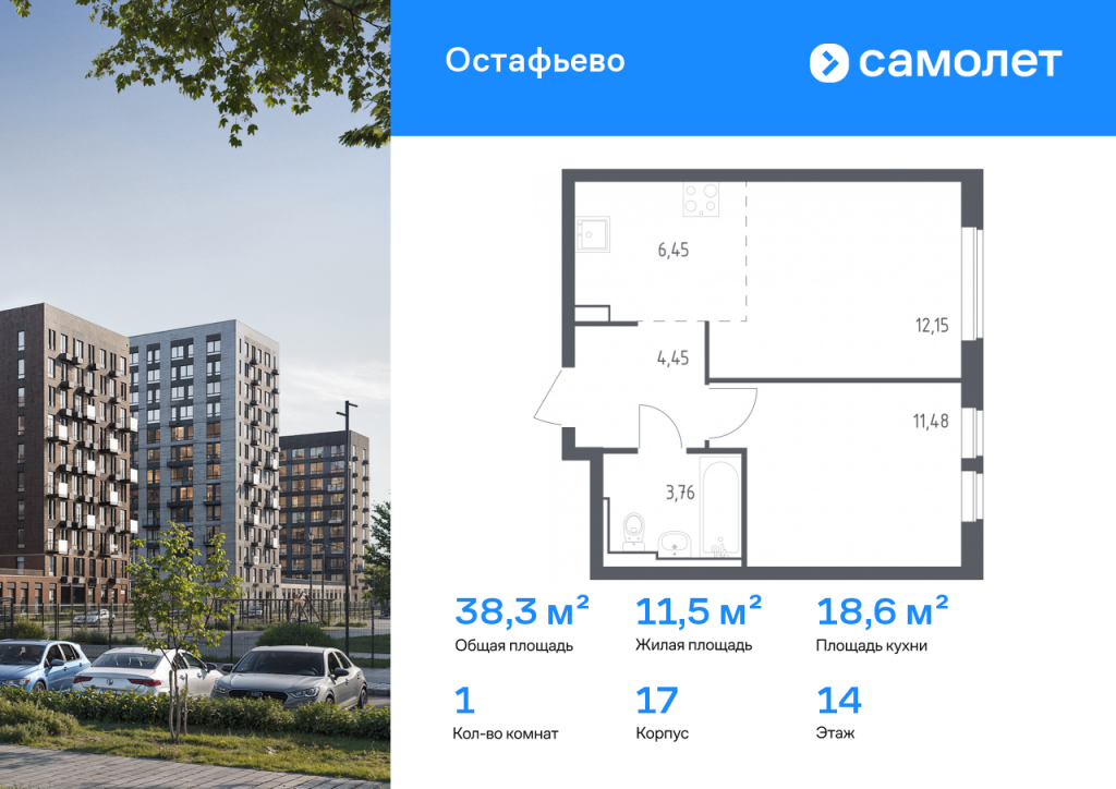 Строим кварталы для жизни с заботой о будущем. Предлагается 1-комнатная квартира комфорт-класса 38,29 кв.м в корпусе 17 на 14 этаже, в ЖК «Остафьево» Квартира без отделки. Доступность опции «отделка» и возможность комплектации мебелью и декором уточняйте у застройщика. Приобрести квартиру возможно по специальным акциям от застройщика, с текущими условиями акций можно ознакомиться в блоке «Акций». Цена динамическая и может отличаться, уточняйте актуальность у застройщика. «Остафьево» — масштабный жилой комплекс в Новой Москве, рядом с одноименным музеем-усадьбой и городским парком «Барыши». До станций МЦД «Щербинка» и «Остафьево» можно добраться на автомобиле за 5–7 минут. Часть домов уже сдана, на территории открыты две школы и три детских сада, а в будущем будет построена поликлиника, ТЦ, еще одна школа и три детских сада. Все необходимое рядом: на первых этажах домов работают магазины, аптеки и кафе. Дворы — приватные мини-парки без машин и посторонних. Кроме игровых площадок, для детей обустроили тематический плейхаб «Маяк». В будущем появятся плейхаб «Алиса в стране чудес», арт-объект «Тропа зеркал», а также большой ландшафтный парк. В квартале — монолитные дома комфортной высоты, от 10 этажей. Светлые фасады украшают кирпичные вставки в теплых природных оттенках.