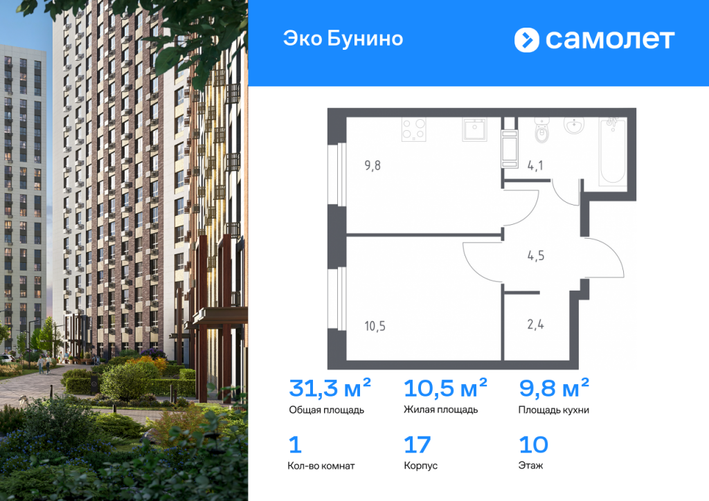 Строим кварталы для жизни с заботой о будущем. Предлагается 1-комнатная квартира комфорт-класса 31,3 кв.м в корпусе 17 на 10 этаже, в ЖК «Эко Бунино» Квартира без отделки. Доступность опции «отделка» и возможность комплектации мебелью и декором уточняйте у застройщика. Приобрести квартиру возможно по специальным акциям от застройщика, с текущими условиями акций можно ознакомиться в блоке «Акций». Цена динамическая и может отличаться, уточняйте актуальность у застройщика. «Эко Бунино» — жилой комплекс в Новой Москве, полностью готовый для жизни. Уже построены школа и детские сады, открыты ледовая арена и магазины. Рядом — 2 станции метро и 3 лесопарка для прогулок. До станции метро «Новомосковская» — 20 минут пешком по экотропе. Во дворах-парках, закрытых от машин, комфортно и безопасно гулять. Здесь высажены уже взрослые деревья, которые создают прохладную тень в жаркий день. Ребенок любого возраста найдет увлекательное занятие в уже готовом плейхабе с большой горкой в виде слона и уникальным игровым оборудованием. Пока дети играют, родители могут прогуляться по бульвару или отдохнуть под навесом из растений. «Эко Бунино» — это 19 монолитных домов переменной этажности. Для облицовки используется навесной вентилируемый фасад и клинкерная плитка, которая имитирует кирпич. Переменная этажность обеспечивает хорошую инсоляцию дворов: в солнечные дни на территории особенно приятно гулять.