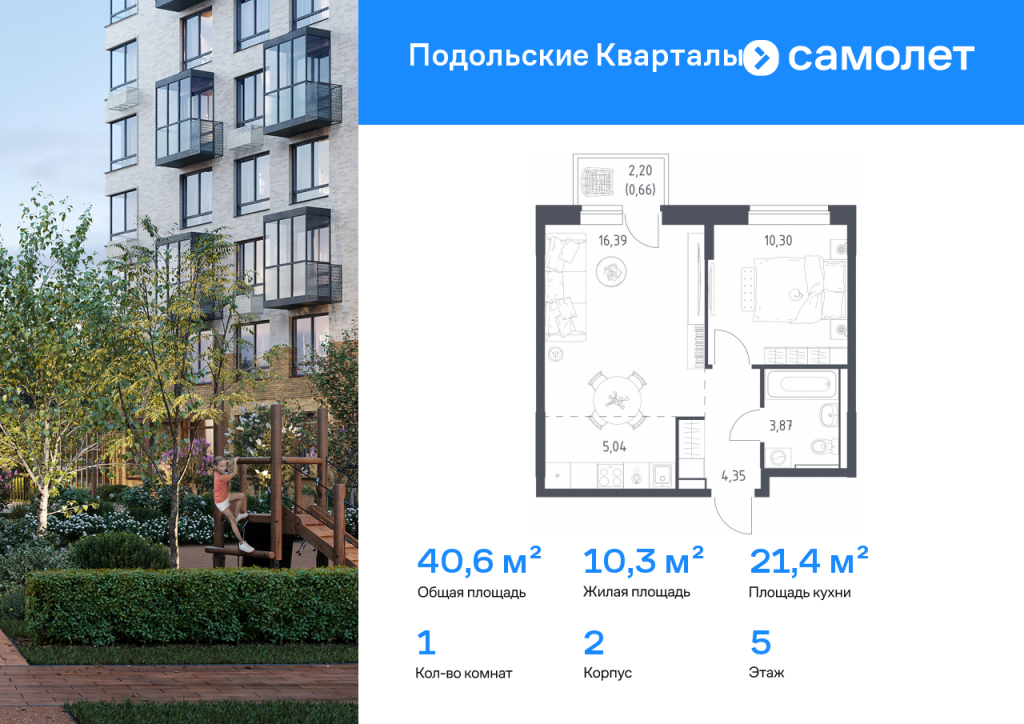 Строим кварталы для жизни с заботой о будущем. Предлагается 1-комнатная квартира комфорт-класса 40,61 кв.м в корпусе 2 на 5 этаже, в ЖК «Подольские Кварталы» Квартира с чистовой отделкой. Доступность дополнительных опций уточняйте у застройщика. Приобрести квартиру возможно по специальным акциям от застройщика, с текущими условиями акций можно ознакомиться в блоке «Акций». Цена динамическая и может отличаться, уточняйте актуальность у застройщика. «Подольские кварталы» — жилой комплекс в Новой Москве, рядом с Дубровицким лесом и рекой Десной. До станции МЦД-2 "Остафьево" - 5 минут на общественном транспорте, до станции МЦД-2 «Силикатная» — 8 минут на машине. Рядом — музей-заповедник «Остафьево», усадьбы Плещеево и Дубровицы. В квартале будут детский сад на 200 мест и учебно-воспитательный комплекс на 1 500 мест, в который войдут школа и детский сад. Первые этажи жилых корпусов займут квартиры, кафе, магазины и салоны красоты. Дворы-парки будут радовать жителей цветением и зеленью: здесь высадят липы, сосны, ели, клены и сирень. Плэйхаб станет местом встреч всех любителей активного отдыха: застройщик оборудует зоны тренажеров и воркаута, площадки для игр в настольный теннис, мяч, шахматы. Также появятся современные игровые площадки для детей. Для автовладельцев предусмотрен многоуровневый паркинг. В проекте — монолитные дома высотой от 9 до 12 этажей. Теплые оттенки фасадов соответствуют дизайн-коду «Янтарный берег». Фасады облицованы ложковой кирпичной кладкой.