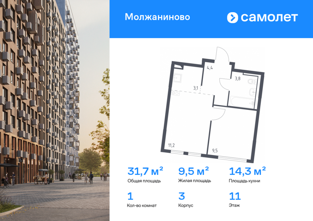 Строим кварталы для жизни с заботой о будущем. Предлагается 1-комнатная квартира комфорт-класса 31,7 кв.м в корпусе 3 на 11 этаже, в ЖК «Молжаниново» Квартира с чистовой отделкой. Доступность дополнительных опций уточняйте у застройщика. Приобрести квартиру возможно по специальным акциям от застройщика, с текущими условиями акций можно ознакомиться в блоке «Акций». Цена динамическая и может отличаться, уточняйте актуальность у застройщика. Жилой комплекс «Молжаниново» — это место, где каждый маршрут продуман так, чтобы вы проводили больше времени с близкими, а не в дороге. Ставьте паруса в канале имени Москвы, устраивайте пикники в Химкинском лесу или ищите редких птиц в Захарьинской пойме. Жилой комплекс сочетает в себе комфорт городской жизни с преимуществами природы. С одной стороны — московская регистрация, собственная инфраструктура, благоустроенные дворы с детскими площадками и зонами отдыха. С другой — ручей и пруд прямо на территории, а также много леса вокруг.