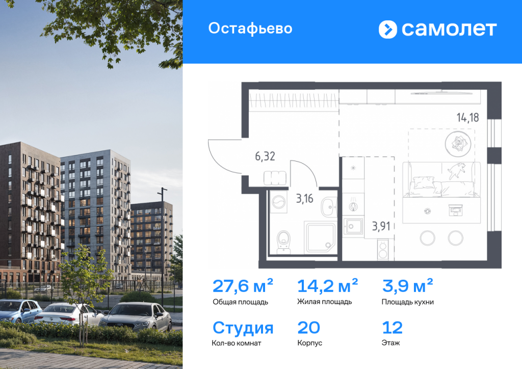 Строим кварталы для жизни с заботой о будущем. Предлагается квартира студия комфорт-класса 27,57 кв.м в корпусе 20 на 12 этаже, в ЖК «Остафьево» Квартира с чистовой отделкой. Доступность дополнительных опций уточняйте у застройщика. Приобрести квартиру возможно по специальным акциям от застройщика, с текущими условиями акций можно ознакомиться в блоке «Акций». Цена динамическая и может отличаться, уточняйте актуальность у застройщика. «Остафьево» — масштабный жилой комплекс в Новой Москве, рядом с одноименным музеем-усадьбой и городским парком «Барыши». До станций МЦД «Щербинка» и «Остафьево» можно добраться на автомобиле за 5–7 минут. Часть домов уже сдана, на территории открыты две школы и три детских сада, а в будущем будет построена поликлиника, ТЦ, еще одна школа и три детских сада. Все необходимое рядом: на первых этажах домов работают магазины, аптеки и кафе. Дворы — приватные мини-парки без машин и посторонних. Кроме игровых площадок, для детей обустроили тематический плейхаб «Маяк». В будущем появятся плейхаб «Алиса в стране чудес», арт-объект «Тропа зеркал», а также большой ландшафтный парк. В квартале — монолитные дома комфортной высоты, от 10 этажей. Светлые фасады украшают кирпичные вставки в теплых природных оттенках.