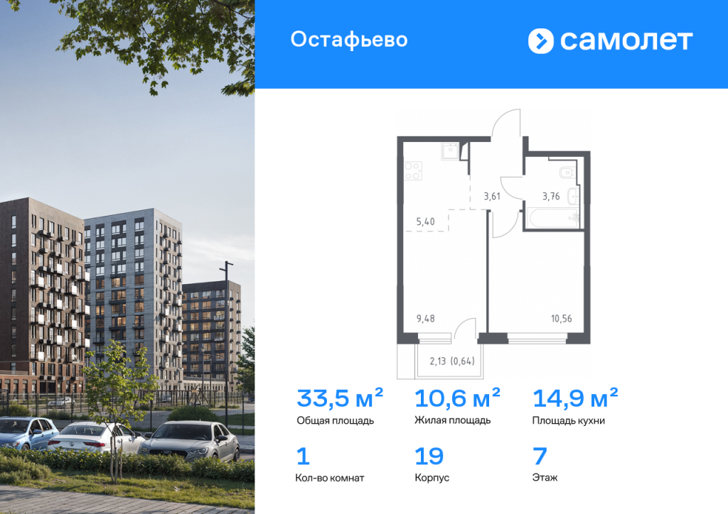 Строим кварталы для жизни с заботой о будущем. Предлагается 1-комнатная квартира комфорт-класса 33,45 кв.м в корпусе 19 на 7 этаже, в ЖК «Остафьево» Квартира без отделки. Доступность опции «отделка» и возможность комплектации мебелью и декором уточняйте у застройщика. Приобрести квартиру возможно по специальным акциям от застройщика, с текущими условиями акций можно ознакомиться в блоке «Акций». Цена динамическая и может отличаться, уточняйте актуальность у застройщика. «Остафьево» — масштабный жилой комплекс в Новой Москве, рядом с одноименным музеем-усадьбой и городским парком «Барыши». До станций МЦД «Щербинка» и «Остафьево» можно добраться на автомобиле за 5–7 минут. Часть домов уже сдана, на территории открыты две школы и три детских сада, а в будущем будет построена поликлиника, ТЦ, еще одна школа и три детских сада. Все необходимое рядом: на первых этажах домов работают магазины, аптеки и кафе. Дворы — приватные мини-парки без машин и посторонних. Кроме игровых площадок, для детей обустроили тематический плейхаб «Маяк». В будущем появятся плейхаб «Алиса в стране чудес», арт-объект «Тропа зеркал», а также большой ландшафтный парк. В квартале — монолитные дома комфортной высоты, от 10 этажей. Светлые фасады украшают кирпичные вставки в теплых природных оттенках.