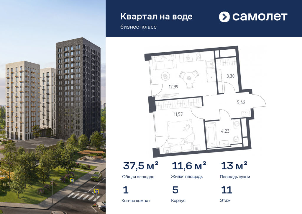 Строим кварталы для жизни с заботой о будущем. Предлагается 1-комнатная квартира бизнес-класса 37,51 кв.м в корпусе 5 на 11 этаже, в ЖК «Квартал на воде» Квартира без отделки. Доступность опции «отделка» и возможность комплектации мебелью и декором уточняйте у застройщика. Приобрести квартиру возможно по специальным акциям от застройщика, с текущими условиями акций можно ознакомиться в блоке «Акций». Цена динамическая и может отличаться, уточняйте актуальность у застройщика. «Квартал на воде» — жилой комплекс бизнес-класса на берегу Москвы-реки, в районе Печатники. Включает дома переменной этажности, собственную благоустроенную набережную и приватные дворы-парки. Проект — пример минималистичной архитектуры от бюро Kleinewelt Architekten. До МЦД-2 «Перерва» — 5 минут пешком. В конце 2027 года рядом откроется станция метро «Курьяново».