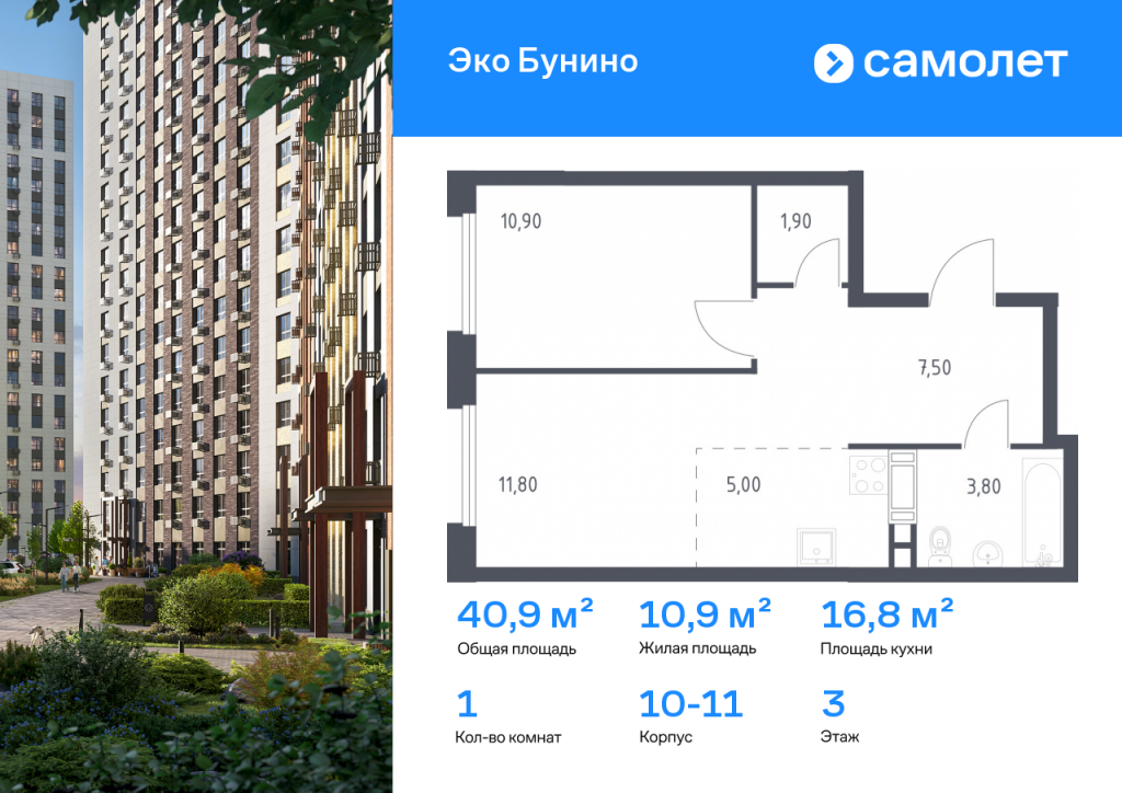 Строим кварталы для жизни с заботой о будущем. Предлагается 1-комнатная квартира комфорт-класса 40,9 кв.м в корпусе 10-11 на 3 этаже, в ЖК «Эко Бунино» Квартира без отделки. Доступность опции «отделка» и возможность комплектации мебелью и декором уточняйте у застройщика. Приобрести квартиру возможно по специальным акциям от застройщика, с текущими условиями акций можно ознакомиться в блоке «Акций». Цена динамическая и может отличаться, уточняйте актуальность у застройщика. «Эко Бунино» — жилой комплекс в Новой Москве, полностью готовый для жизни. Уже построены школа и детские сады, открыты ледовая арена и магазины. Рядом — 2 станции метро и 3 лесопарка для прогулок. До станции метро «Новомосковская» — 20 минут пешком по экотропе. Во дворах-парках, закрытых от машин, комфортно и безопасно гулять. Здесь высажены уже взрослые деревья, которые создают прохладную тень в жаркий день. Ребенок любого возраста найдет увлекательное занятие в уже готовом плейхабе с большой горкой в виде слона и уникальным игровым оборудованием. Пока дети играют, родители могут прогуляться по бульвару или отдохнуть под навесом из растений. «Эко Бунино» — это 19 монолитных домов переменной этажности. Для облицовки используется навесной вентилируемый фасад и клинкерная плитка, которая имитирует кирпич. Переменная этажность обеспечивает хорошую инсоляцию дворов: в солнечные дни на территории особенно приятно гулять.