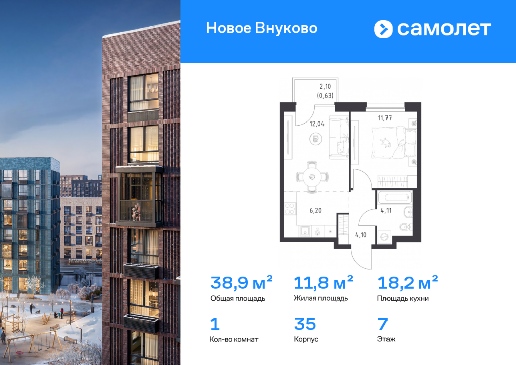 Строим кварталы для жизни с заботой о будущем. Предлагается 1-комнатная квартира комфорт-класса 38,85 кв.м в корпусе 35 на 7 этаже, в ЖК «Новое Внуково» Квартира без отделки. Доступность опции «отделка» и возможность комплектации мебелью и декором уточняйте у застройщика. Приобрести квартиру возможно по специальным акциям от застройщика, с текущими условиями акций можно ознакомиться в блоке «Акций». Цена динамическая и может отличаться, уточняйте актуальность у застройщика. «Новое Внуково» — это жилой комплекс в Новой Москве, у подножия берега реки Незнайка. Поблизости — живописные места для прогулок: народный парк «Ручеек», усадьба Старо-Никольское, Валуевский и Ульяновский лесопарки. Часть домов сдана и внутри района уже открыт детсад с бассейном, а в ближайшее время откроются еще 3 детсада, 2 школы и поликлиника. На территории проекта будет построен первый в России Центр Российской Федерации Баскетбола, где будут площадки с трибунами, тренажерный зал, кафе и конференц-зал. Дворы-парки закрыты от машин и посторонних. На территории — прогулочный маршрут вдоль реки Незнайка и набережная с шезлонгами и качелями для отдыха. Также здесь появится плейхаб «Незнайка на Луне», площадь для мероприятий с сухим фонтаном, летним кинотеатром и кафе. В жилом комплексе — монолитные дома высотой от 6 до 14 этажей. Фасады облицованы кирпичом природных оттенков.