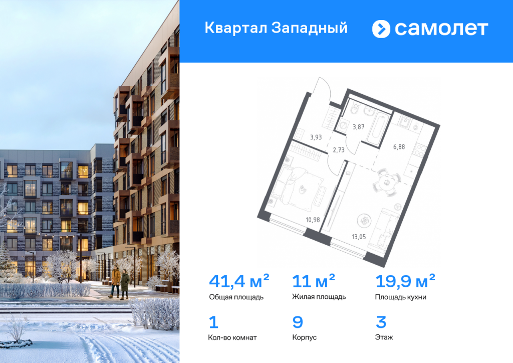 Строим кварталы для жизни с заботой о будущем. Предлагается 1-комнатная квартира комфорт-класса 41,44 кв.м в корпусе 9 на 3 этаже, в ЖК «Квартал Западный» Квартира без отделки. Доступность опции «отделка» и возможность комплектации мебелью и декором уточняйте у застройщика. Приобрести квартиру возможно по специальным акциям от застройщика, с текущими условиями акций можно ознакомиться в блоке «Акций». Цена динамическая и может отличаться, уточняйте актуальность у застройщика. Жилой комплекс в окружении лесопарков и рядом с рекой. До станции МЦД-4 «Санино» можно дойти пешком за 7 минут, а на территории проекта появится транспортно-пересадочный узел с торговым центром. Для жителей построят школу, 2 детсада, в одном из которых будут развивающие кабинеты-трансформеры. Дворы — тихое зеленое пространство без машин. В проекте появится собственный ландшафтный парк с благоустроенной набережной и центральная площадь, на которой будут проводиться различные мероприятия. Высота домов — от 5 до 15 этажей. Фасады выполняют в естественных оттенках, в соответствии с дизайн-кодом «Полевой луг». У каждой секции — свое цветовое решение. Белый цвет верхних этажей добавляет застройке легкости. Фасады облицованы клинкерным глазурованным кирпичом, который используют в проектах бизнес-класса.