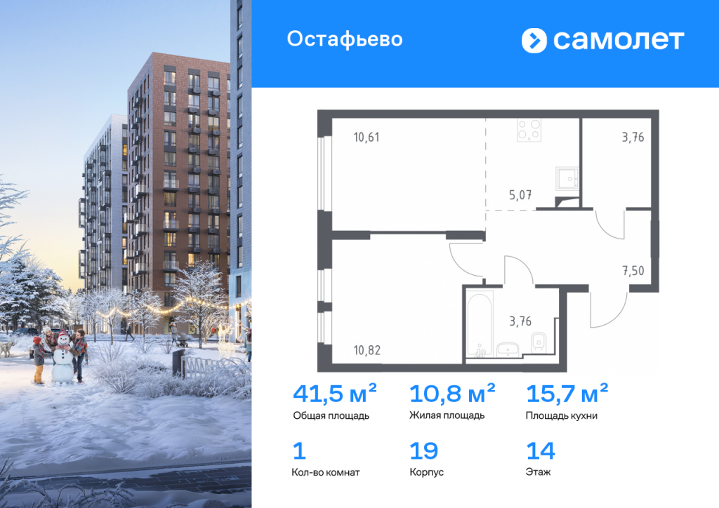 Строим кварталы для жизни с заботой о будущем. Предлагается 1-комнатная квартира комфорт-класса 41,52 кв.м в корпусе 19 на 14 этаже, в ЖК «Остафьево» Квартира с предчистовой отделкой. Доступность дополнительных опций уточняйте у застройщика. Приобрести квартиру возможно по специальным акциям от застройщика, с текущими условиями акций можно ознакомиться в блоке «Акций». Цена динамическая и может отличаться, уточняйте актуальность у застройщика. «Остафьево» — масштабный жилой комплекс в Новой Москве, рядом с одноименным музеем-усадьбой и городским парком «Барыши». До станций МЦД «Щербинка» и «Остафьево» можно добраться на автомобиле за 5–7 минут. Часть домов уже сдана, на территории открыты две школы и три детских сада, а в будущем будет построена поликлиника, ТЦ, еще одна школа и три детских сада. Все необходимое рядом: на первых этажах домов работают магазины, аптеки и кафе. Дворы — приватные мини-парки без машин и посторонних. Кроме игровых площадок, для детей обустроили тематический плейхаб «Маяк». В будущем появятся плейхаб «Алиса в стране чудес», арт-объект «Тропа зеркал», а также большой ландшафтный парк. В квартале — монолитные дома комфортной высоты, от 10 этажей. Светлые фасады украшают кирпичные вставки в теплых природных оттенках.