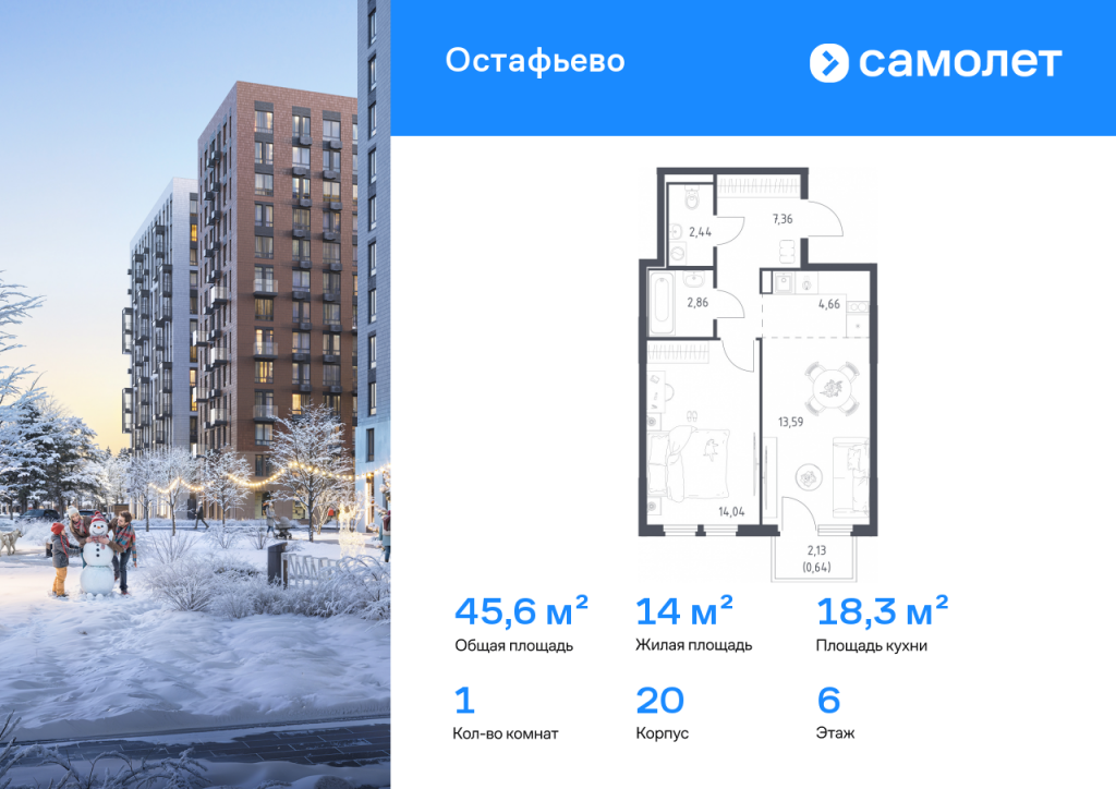 Строим кварталы для жизни с заботой о будущем. Предлагается 1-комнатная квартира комфорт-класса 45,59 кв.м в корпусе 20 на 6 этаже, в ЖК «Остафьево» Квартира без отделки. Доступность опции «отделка» и возможность комплектации мебелью и декором уточняйте у застройщика. Приобрести квартиру возможно по специальным акциям от застройщика, с текущими условиями акций можно ознакомиться в блоке «Акций». Цена динамическая и может отличаться, уточняйте актуальность у застройщика. «Остафьево» — масштабный жилой комплекс в Новой Москве, рядом с одноименным музеем-усадьбой и городским парком «Барыши». До станций МЦД «Щербинка» и «Остафьево» можно добраться на автомобиле за 5–7 минут. Часть домов уже сдана, на территории открыты две школы и три детских сада, а в будущем будет построена поликлиника, ТЦ, еще одна школа и три детских сада. Все необходимое рядом: на первых этажах домов работают магазины, аптеки и кафе. Дворы — приватные мини-парки без машин и посторонних. Кроме игровых площадок, для детей обустроили тематический плейхаб «Маяк». В будущем появятся плейхаб «Алиса в стране чудес», арт-объект «Тропа зеркал», а также большой ландшафтный парк. В квартале — монолитные дома комфортной высоты, от 10 этажей. Светлые фасады украшают кирпичные вставки в теплых природных оттенках.
