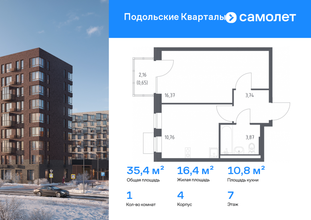 Строим кварталы для жизни с заботой о будущем. Предлагается 1-комнатная квартира комфорт-класса 35,39 кв.м в корпусе 4 на 7 этаже, в ЖК «Подольские Кварталы» Квартира без отделки. Доступность опции «отделка» и возможность комплектации мебелью и декором уточняйте у застройщика. Приобрести квартиру возможно по специальным акциям от застройщика, с текущими условиями акций можно ознакомиться в блоке «Акций». Цена динамическая и может отличаться, уточняйте актуальность у застройщика. «Подольские кварталы» — жилой комплекс в Новой Москве, рядом с Дубровицким лесом и рекой Десной. До станции МЦД-2 "Остафьево" - 5 минут на общественном транспорте, до станции МЦД-2 «Силикатная» — 8 минут на машине. Рядом — музей-заповедник «Остафьево», усадьбы Плещеево и Дубровицы. В квартале будут детский сад на 200 мест и учебно-воспитательный комплекс на 1 500 мест, в который войдут школа и детский сад. Первые этажи жилых корпусов займут квартиры, кафе, магазины и салоны красоты. Дворы-парки будут радовать жителей цветением и зеленью: здесь высадят липы, сосны, ели, клены и сирень. Плэйхаб станет местом встреч всех любителей активного отдыха: застройщик оборудует зоны тренажеров и воркаута, площадки для игр в настольный теннис, мяч, шахматы. Также появятся современные игровые площадки для детей. Для автовладельцев предусмотрен многоуровневый паркинг. В проекте — монолитные дома высотой от 9 до 12 этажей. Теплые оттенки фасадов соответствуют дизайн-коду «Янтарный берег». Фасады облицованы ложковой кирпичной кладкой.