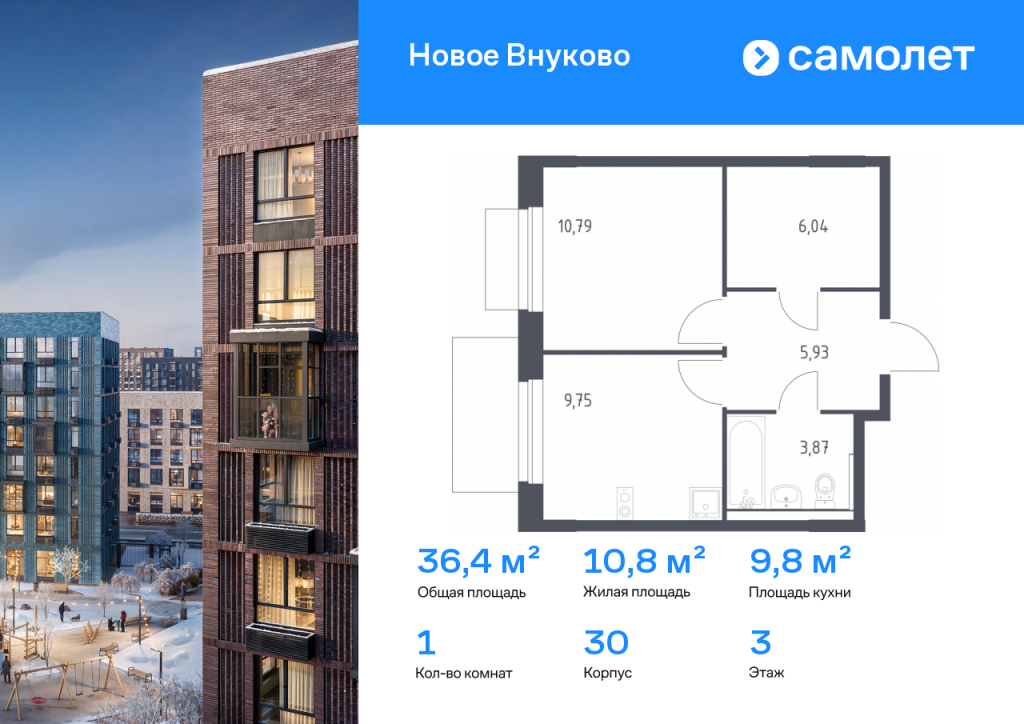 Строим кварталы для жизни с заботой о будущем. Предлагается 1-комнатная квартира комфорт-класса 36,38 кв.м в корпусе 30 на 3 этаже, в ЖК «Новое Внуково» Квартира без отделки. Доступность опции «отделка» и возможность комплектации мебелью и декором уточняйте у застройщика. Приобрести квартиру возможно по специальным акциям от застройщика, с текущими условиями акций можно ознакомиться в блоке «Акций». Цена динамическая и может отличаться, уточняйте актуальность у застройщика. «Новое Внуково» — это жилой комплекс в Новой Москве, у подножия берега реки Незнайка. Поблизости — живописные места для прогулок: народный парк «Ручеек», усадьба Старо-Никольское, Валуевский и Ульяновский лесопарки. Часть домов сдана и внутри района уже открыт детсад с бассейном, а в ближайшее время откроются еще 3 детсада, 2 школы и поликлиника. На территории проекта будет построен первый в России Центр Российской Федерации Баскетбола, где будут площадки с трибунами, тренажерный зал, кафе и конференц-зал. Дворы-парки закрыты от машин и посторонних. На территории — прогулочный маршрут вдоль реки Незнайка и набережная с шезлонгами и качелями для отдыха. Также здесь появится плейхаб «Незнайка на Луне», площадь для мероприятий с сухим фонтаном, летним кинотеатром и кафе. В жилом комплексе — монолитные дома высотой от 6 до 14 этажей. Фасады облицованы кирпичом природных оттенков.