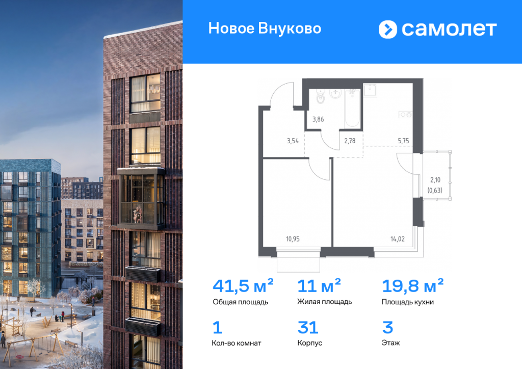 Строим кварталы для жизни с заботой о будущем. Предлагается 1-комнатная квартира комфорт-класса 41,53 кв.м в корпусе 31 на 3 этаже, в ЖК «Новое Внуково» Квартира с чистовой отделкой. Доступность дополнительных опций уточняйте у застройщика. Приобрести квартиру возможно по специальным акциям от застройщика, с текущими условиями акций можно ознакомиться в блоке «Акций». Цена динамическая и может отличаться, уточняйте актуальность у застройщика. «Новое Внуково» — это жилой комплекс в Новой Москве, у подножия берега реки Незнайка. Поблизости — живописные места для прогулок: народный парк «Ручеек», усадьба Старо-Никольское, Валуевский и Ульяновский лесопарки. Часть домов сдана и внутри района уже открыт детсад с бассейном, а в ближайшее время откроются еще 3 детсада, 2 школы и поликлиника. На территории проекта будет построен первый в России Центр Российской Федерации Баскетбола, где будут площадки с трибунами, тренажерный зал, кафе и конференц-зал. Дворы-парки закрыты от машин и посторонних. На территории — прогулочный маршрут вдоль реки Незнайка и набережная с шезлонгами и качелями для отдыха. Также здесь появится плейхаб «Незнайка на Луне», площадь для мероприятий с сухим фонтаном, летним кинотеатром и кафе. В жилом комплексе — монолитные дома высотой от 6 до 14 этажей. Фасады облицованы кирпичом природных оттенков.