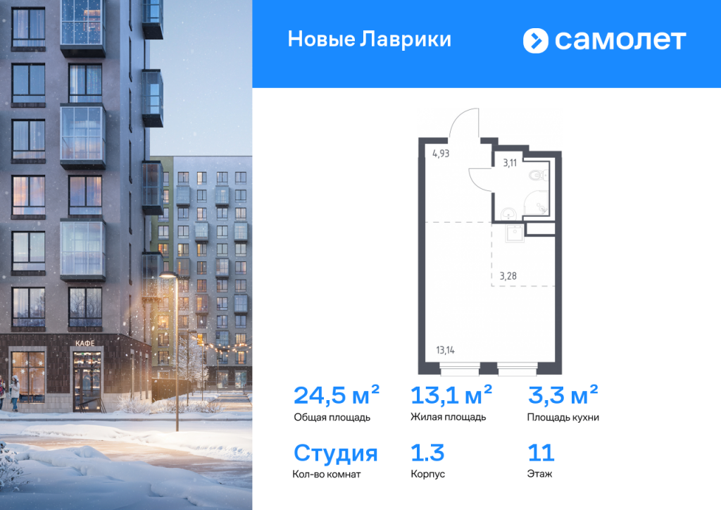 Строим кварталы для жизни с заботой о будущем. Предлагается квартира студия комфорт-класса 24,46 кв.м в корпусе 1.3 на 11 этаже, в ЖК «Новые Лаврики» Квартира без отделки. Доступность опции «отделка» и возможность комплектации мебелью и декором уточняйте у застройщика. Приобрести квартиру возможно по специальным акциям от застройщика, с текущими условиями акций можно ознакомиться в блоке «Акций». Цена динамическая и может отличаться, уточняйте актуальность у застройщика. Проект «Новые Лаврики» — жилой комплекс комфорт-класса во Всеволожском районе Санкт-Петербурга. До КАДа — 8 минут на автомобиле, до станции метро «Девяткино» — 10 минут. Дети смогут сами ходить в детский сад на территории проекта. Рядом уже есть школы, поликлиники, магазины и торговые центры. На выходных отправляйтесь на маршрут по экотропе «Малиновая гора», устраивайте пикники в парке «Зубровник» или загорайте на курорте «Охта Парк». Камерные монолитно-кирпичные дома высотой до 12 этажей с панорамным остеклением балконов и первых этажей. В приватном дворе-парке без машин дети будут играть на площадках в экостиле, а взрослые — заниматься йогой на воркаут-площадках. Для машин — плоскостной и подземный паркинги. Вход в сквозные парадные — на уровне земли. Коляски и велосипеды можно оставить в отдельных помещениях на первом этаже.