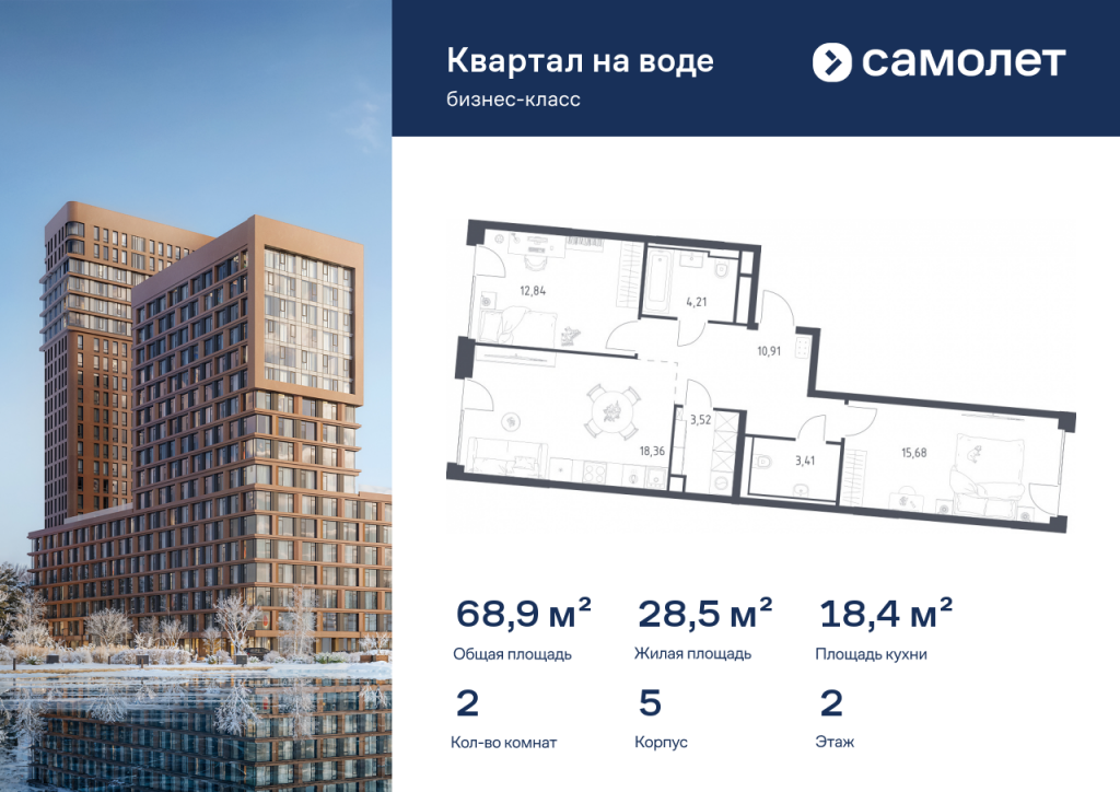 Строим кварталы для жизни с заботой о будущем. Предлагается 2-комнатная квартира бизнес-класса 68,93 кв.м в корпусе 5 на 2 этаже, в ЖК «Квартал на воде» Квартира без отделки. Доступность опции «отделка» и возможность комплектации мебелью и декором уточняйте у застройщика. Приобрести квартиру возможно по специальным акциям от застройщика, с текущими условиями акций можно ознакомиться в блоке «Акций». Цена динамическая и может отличаться, уточняйте актуальность у застройщика. «Квартал на воде» — жилой комплекс бизнес-класса на берегу Москвы-реки, в районе Печатники. Включает дома переменной этажности, собственную благоустроенную набережную и приватные дворы-парки. Проект — пример минималистичной архитектуры от бюро Kleinewelt Architekten. До МЦД-2 «Перерва» — 5 минут пешком. В конце 2027 года рядом откроется станция метро «Курьяново».