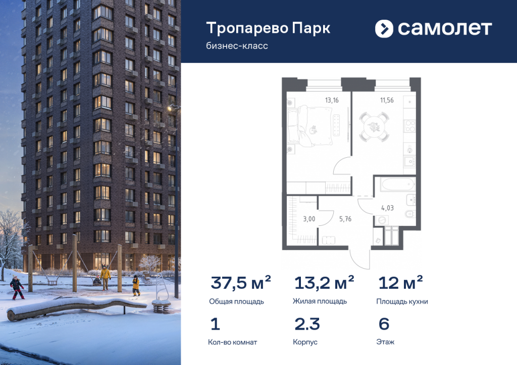 Строим кварталы для жизни с заботой о будущем. Предлагаются 1-комнатные апартаменты бизнес-класса 37,45 кв.м в корпусе 2.3 на 6 этаже, в МФК «Тропарево Парк» Апартаменты с чистовой отделкой. Доступность дополнительных опций уточняйте у застройщика. Прописка не предусмотрена в рамках юридического статуса - апартаменты. Приобрести апартаменты возможно по специальным акциям от застройщика, с текущими условиями акций можно ознакомиться в блоке «Акций». Цена динамическая и может отличаться, уточняйте актуальность у застройщика. «Тропарево Парк» — комплекс апартаментов бизнес-класса рядом с Ленинским проспектом, в Новой Москве. Находится всего в 10 минутах пешком от станции метро «Румянцево». Включает 7 жилых корпусов высотой от 16 до 23 этажей, приватные дворы-сады, обширную зеленую территорию с общественными пространствами. Из части апартаментов открываются виды на Тропаревский лесопарк, расположенный рядом.
