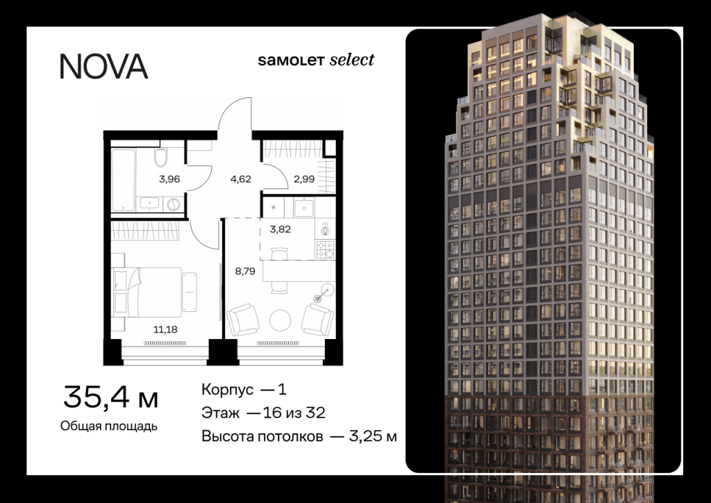 Строим кварталы для жизни с заботой о будущем. Предлагается 1-комнатная квартира премиум-класса 35,36 кв.м в корпусе 1 на 16 этаже, в ЖК «NOVA» Квартира без отделки. Доступность опции «отделка» и возможность комплектации мебелью и декором уточняйте у застройщика. Приобрести квартиру возможно по специальным акциям от застройщика, с текущими условиями акций можно ознакомиться в блоке «Акций». Цена динамическая и может отличаться, уточняйте актуальность у застройщика. «NOVA» — первый проект в премиальной линейке Samolet Select. Возводится в престижных Раменках и вблизи Кутузовского проспекта. Шесть корпусов переменной этажности повторяют очертания горных вершин и воплощают концепцию проекта-скалы: возвышающийся над городом ансамбль дает то же ощущение масштаба и ясности. Утопающая в зелени «Долина реки Сетунь», гастрономические точки, кинотеатр под открытым небом, бизнес-центр и фитнес-клуб — все это делает NOVA самодостаточным, но чувствующим пульс города пространством.