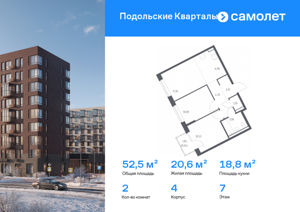 Строим кварталы для жизни с заботой о будущем. Предлагается 2-комнатная квартира комфорт-класса 52,45 кв.м в корпусе 4 на 7 этаже, в ЖК «Подольские Кварталы» Квартира с чистовой отделкой. Доступность дополнительных опций уточняйте у застройщика. Приобрести квартиру возможно по специальным акциям от застройщика, с текущими условиями акций можно ознакомиться в блоке «Акций». Цена динамическая и может отличаться, уточняйте актуальность у застройщика. «Подольские кварталы» — жилой комплекс в Новой Москве, рядом с Дубровицким лесом и рекой Десной. До станции МЦД-2 "Остафьево" - 5 минут на общественном транспорте, до станции МЦД-2 «Силикатная» — 8 минут на машине. Рядом — музей-заповедник «Остафьево», усадьбы Плещеево и Дубровицы. В квартале будут детский сад на 200 мест и учебно-воспитательный комплекс на 1 500 мест, в который войдут школа и детский сад. Первые этажи жилых корпусов займут квартиры, кафе, магазины и салоны красоты. Дворы-парки будут радовать жителей цветением и зеленью: здесь высадят липы, сосны, ели, клены и сирень. Плэйхаб станет местом встреч всех любителей активного отдыха: застройщик оборудует зоны тренажеров и воркаута, площадки для игр в настольный теннис, мяч, шахматы. Также появятся современные игровые площадки для детей. Для автовладельцев предусмотрен многоуровневый паркинг. В проекте — монолитные дома высотой от 9 до 12 этажей. Теплые оттенки фасадов соответствуют дизайн-коду «Янтарный берег». Фасады облицованы ложковой кирпичной кладкой.