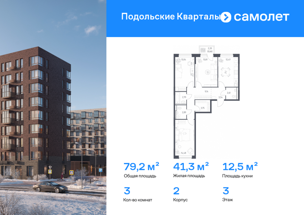 Строим кварталы для жизни с заботой о будущем. Предлагается 3-комнатная квартира комфорт-класса 79,18 кв.м в корпусе 2 на 3 этаже, в ЖК «Подольские Кварталы» Квартира без отделки. Доступность опции «отделка» и возможность комплектации мебелью и декором уточняйте у застройщика. Приобрести квартиру возможно по специальным акциям от застройщика, с текущими условиями акций можно ознакомиться в блоке «Акций». Цена динамическая и может отличаться, уточняйте актуальность у застройщика. «Подольские кварталы» — жилой комплекс в Новой Москве, рядом с Дубровицким лесом и рекой Десной. До станции МЦД-2 "Остафьево" - 5 минут на общественном транспорте, до станции МЦД-2 «Силикатная» — 8 минут на машине. Рядом — музей-заповедник «Остафьево», усадьбы Плещеево и Дубровицы. В квартале будут детский сад на 200 мест и учебно-воспитательный комплекс на 1 500 мест, в который войдут школа и детский сад. Первые этажи жилых корпусов займут квартиры, кафе, магазины и салоны красоты. Дворы-парки будут радовать жителей цветением и зеленью: здесь высадят липы, сосны, ели, клены и сирень. Плэйхаб станет местом встреч всех любителей активного отдыха: застройщик оборудует зоны тренажеров и воркаута, площадки для игр в настольный теннис, мяч, шахматы. Также появятся современные игровые площадки для детей. Для автовладельцев предусмотрен многоуровневый паркинг. В проекте — монолитные дома высотой от 9 до 12 этажей. Теплые оттенки фасадов соответствуют дизайн-коду «Янтарный берег». Фасады облицованы ложковой кирпичной кладкой.