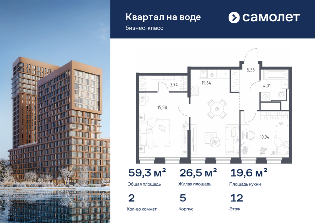 Строим кварталы для жизни с заботой о будущем. Предлагается 2-комнатная квартира бизнес-класса 59,27 кв.м в корпусе 5 на 12 этаже, в ЖК «Квартал на воде» Квартира без отделки. Доступность опции «отделка» и возможность комплектации мебелью и декором уточняйте у застройщика. Приобрести квартиру возможно по специальным акциям от застройщика, с текущими условиями акций можно ознакомиться в блоке «Акций». Цена динамическая и может отличаться, уточняйте актуальность у застройщика. «Квартал на воде» — жилой комплекс бизнес-класса на берегу Москвы-реки, в районе Печатники. Включает дома переменной этажности, собственную благоустроенную набережную и приватные дворы-парки. Проект — пример минималистичной архитектуры от бюро Kleinewelt Architekten. До МЦД-2 «Перерва» — 5 минут пешком. В конце 2027 года рядом откроется станция метро «Курьяново».