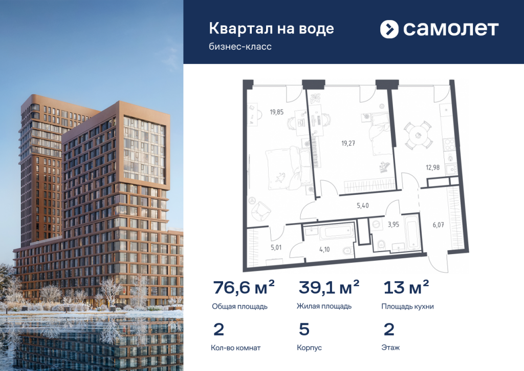 Строим кварталы для жизни с заботой о будущем. Предлагается 2-комнатная квартира бизнес-класса 76,63 кв.м в корпусе 5 на 2 этаже, в ЖК «Квартал на воде» Квартира без отделки. Доступность опции «отделка» и возможность комплектации мебелью и декором уточняйте у застройщика. Приобрести квартиру возможно по специальным акциям от застройщика, с текущими условиями акций можно ознакомиться в блоке «Акций». Цена динамическая и может отличаться, уточняйте актуальность у застройщика. «Квартал на воде» — жилой комплекс бизнес-класса на берегу Москвы-реки, в районе Печатники. Включает дома переменной этажности, собственную благоустроенную набережную и приватные дворы-парки. Проект — пример минималистичной архитектуры от бюро Kleinewelt Architekten. До МЦД-2 «Перерва» — 5 минут пешком. В конце 2027 года рядом откроется станция метро «Курьяново».