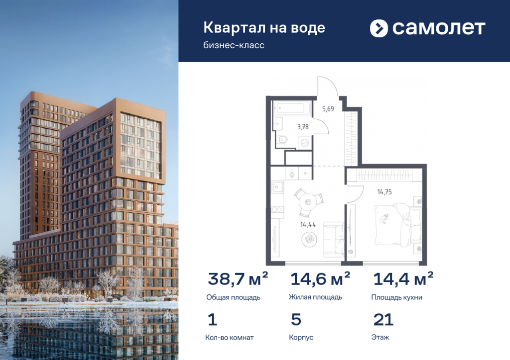 Строим кварталы для жизни с заботой о будущем. Предлагается 1-комнатная квартира бизнес-класса 38,66 кв.м в корпусе 5 на 21 этаже, в ЖК «Квартал на воде» Квартира без отделки. Доступность опции «отделка» и возможность комплектации мебелью и декором уточняйте у застройщика. Приобрести квартиру возможно по специальным акциям от застройщика, с текущими условиями акций можно ознакомиться в блоке «Акций». Цена динамическая и может отличаться, уточняйте актуальность у застройщика. «Квартал на воде» — жилой комплекс бизнес-класса на берегу Москвы-реки, в районе Печатники. Включает дома переменной этажности, собственную благоустроенную набережную и приватные дворы-парки. Проект — пример минималистичной архитектуры от бюро Kleinewelt Architekten. До МЦД-2 «Перерва» — 5 минут пешком. В конце 2027 года рядом откроется станция метро «Курьяново».
