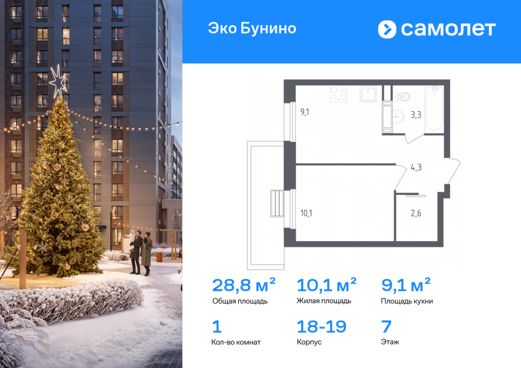 Строим кварталы для жизни с заботой о будущем. Предлагается 1-комнатная квартира комфорт-класса 28,8 кв.м в корпусе 18-19 на 7 этаже, в ЖК «Эко Бунино» Квартира с чистовой отделкой. Доступность дополнительных опций уточняйте у застройщика. Приобрести квартиру возможно по специальным акциям от застройщика, с текущими условиями акций можно ознакомиться в блоке «Акций». Цена динамическая и может отличаться, уточняйте актуальность у застройщика. «Эко Бунино» — жилой комплекс в Новой Москве, полностью готовый для жизни. Уже построены школа и детские сады, открыты ледовая арена и магазины. Рядом — 2 станции метро и 3 лесопарка для прогулок. До станции метро «Новомосковская» — 20 минут пешком по экотропе. Во дворах-парках, закрытых от машин, комфортно и безопасно гулять. Здесь высажены уже взрослые деревья, которые создают прохладную тень в жаркий день. Ребенок любого возраста найдет увлекательное занятие в уже готовом плейхабе с большой горкой в виде слона и уникальным игровым оборудованием. Пока дети играют, родители могут прогуляться по бульвару или отдохнуть под навесом из растений. «Эко Бунино» — это 19 монолитных домов переменной этажности. Для облицовки используется навесной вентилируемый фасад и клинкерная плитка, которая имитирует кирпич. Переменная этажность обеспечивает хорошую инсоляцию дворов: в солнечные дни на территории особенно приятно гулять.