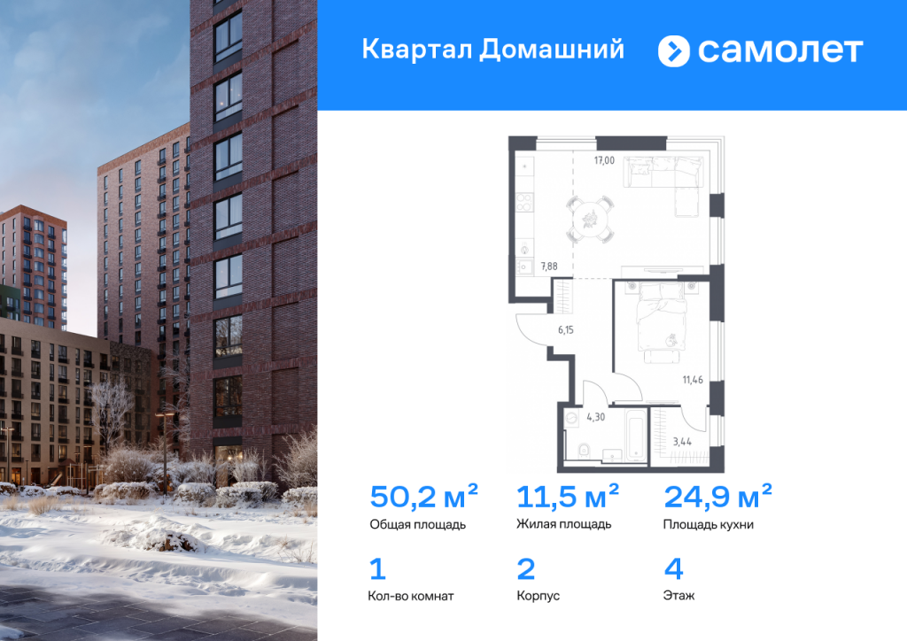 Строим кварталы для жизни с заботой о будущем. Предлагается 1-комнатная квартира комфорт-класса 50,23 кв.м в корпусе 2 на 4 этаже, в ЖК «Квартал Домашний» Квартира без отделки. Доступность опции «отделка» и возможность комплектации мебелью и декором уточняйте у застройщика. Приобрести квартиру возможно по специальным акциям от застройщика, с текущими условиями акций можно ознакомиться в блоке «Акций». Цена динамическая и может отличаться, уточняйте актуальность у застройщика. «Квартал Домашний» находится в Марьино — всего 7 минут пешком до МЦД-2 «Курьяново». Рядом с домом — набережная Москвы-реки. Внутренняя инфраструктура проекта продумана до мелочей: от супермаркетов до кафе и салонов красоты. В «Квартале Домашнем» можно выбирать свою высоту — в комплексе есть корпуса от 7 до 19 этажей. Среди планировочных решений — просторные кухни-гостиные, гардеробные, постирочные, лоджии и угловые окна. «Квартал Домашний» — это: 1. До станции МЦД-2 «Курьяново» — 7 минут пешком 2. До парка 850-летия Москвы — 5 минут пешком 3. До парка «Борисовские пруды» — 15 минут на машине 4. До музея-заповедника «Царицыно» — 20 минут на авто 5. Музей-заповедник «Коломенское» — для фотосессий и прогулок 6. Европейская архитектура с фасадами природных оттенков: песочного, серого, зеленого, терракотового 7. Школа со стадионом, 2 детских сада — на территории квартала 8. Магазины, кафе и салоны красоты на первых этажах домов 9. Приватные дворы без машин 10. Подземный паркинг с местами для электрокаров и индивидуальные кладовые 11. Спортивные и игровые площадки